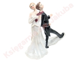 Zabawna figurka młodej pary w śmiesznej pozycji, w dwóch wersjach. Pięknie przyozdobi tort, ciasto, prezent lub miejsca gdzie siedzi Młoda Para. Figurka wykonana jest z żywicy syntetycznej (polyresin) przez co jest dużo trwalsza i mocniejsza od gipsowych.
